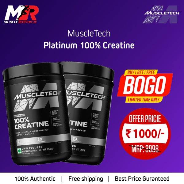 MUSCLETECH CREATINE 250 GM*PACK OF 2 FREE MUSCLETECH BRANDED SHAKER…..